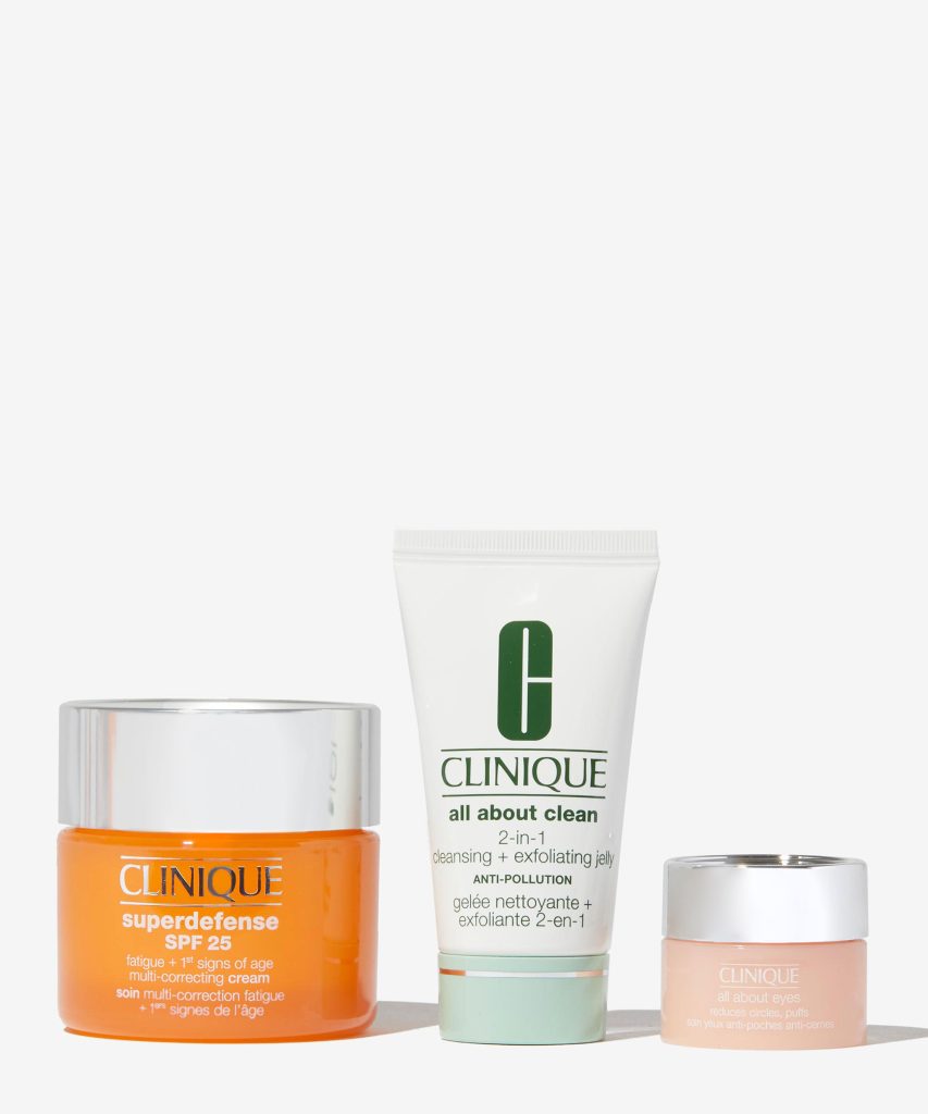 ست اورجینال سهتکه جوانساز Clinique، شامل سه محصول اساسی و کاملکننده یکدیگر است که در کنار هم، یک روال مراقبت از پوست روزانه و شبانه بینظیر را ایجاد میکنند: